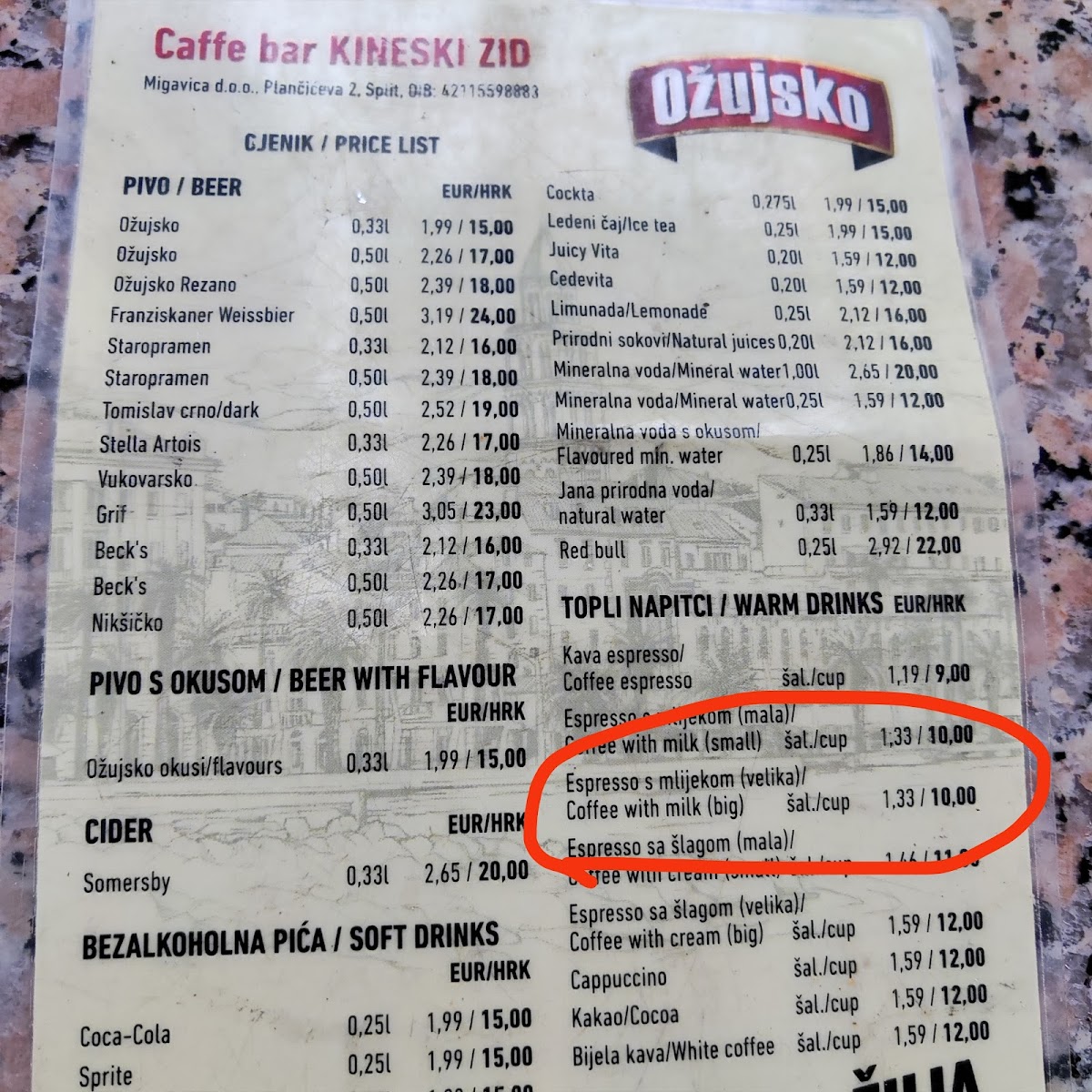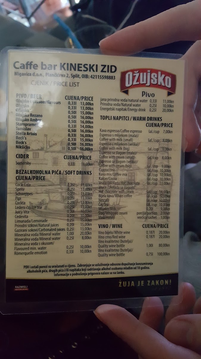 Welcome to the Chinese Wall Cafe Bar, a hidden gem in Split, Croatia. Nestled on Plančićeva ul., this café merges a vibrant atmosphere with exceptional value. With friendly staff always ready to serve up jokes along with affordable beverages—coffee under two euros and budget-friendly alcohol—you'll feel right at home. The spacious two-floor layout, complete with plush leather couches, is perfect for gathering with friends or unwinding after a hectic day. Patrons rave about the welcoming vibe, especially before local Hajduk Split matches, making it an ideal spot for sports enthusiasts. While the menu boasts quality coffee and beer, it's the sense of community that truly shines at Chinese Wall. Despite minor renovations needed in the restrooms, the cafe's charm and affordability help it stand out as a local favorite, especially among students from nearby schools. Discover the comforting atmosphere and delicious offerings that make this bar a must-visit!